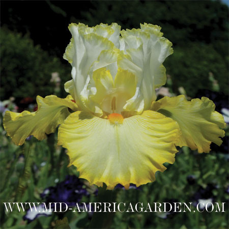 Інтенсивно гофрований ірис. Стандарти білі з шокуючою жовтої вузенькою каймою. Фоли жовті плавно переходять в насичено жовту облямівку. Борідка янтарно помаранчева. Дуже ніжний і милий квітка.
