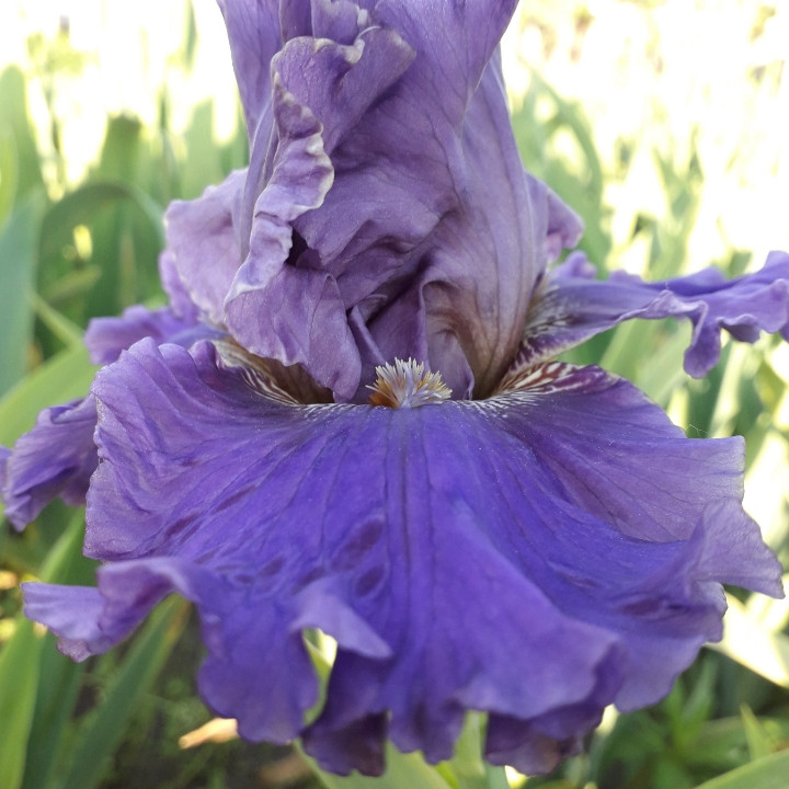 Стандарти чудового ірису м'якого відтінку туманною орхідеї, мелкокружевные. Фоли розлогі, багатого бордоско-пурпурного кольору, з лавандового окантовкою. Підстава папирусно-медове з прожилками кольору паленої сієнни. Борідка – кармін з бавовняними ворсинками.